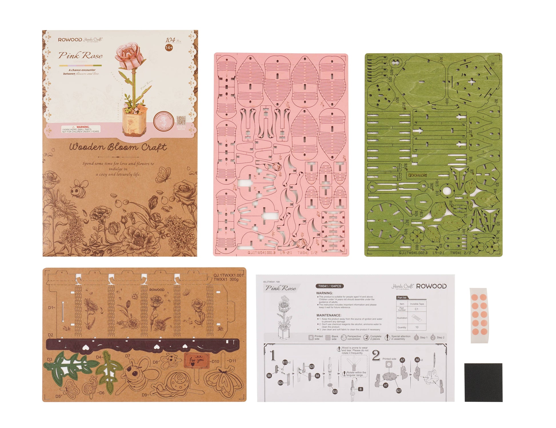 3D Wooden Flower Puzzle: Pink Rose