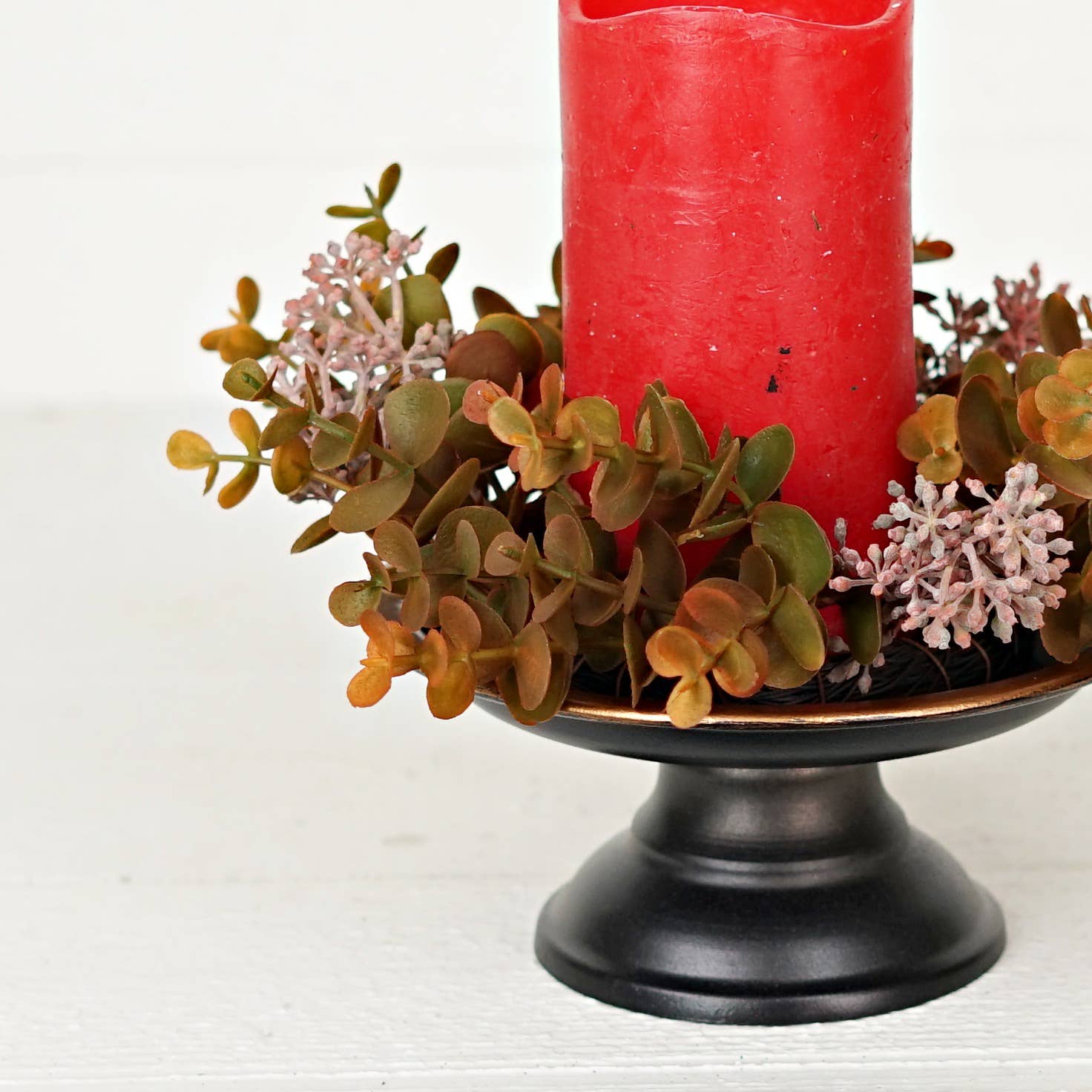 Elevate your décor with this black and gold pedestal plate, perfect for adding a touch of elegance to both daily settings and festive occasions. Use as a raised tray, a candle holder, or just to display greens.