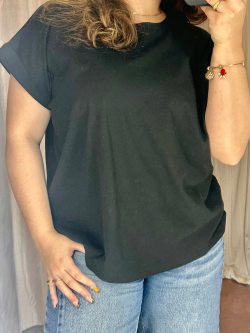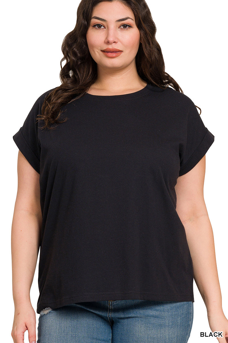 Experience comfort with our black round neck folded short sleeve T-shirt, crafted from high-quality cotton for durability. Designed with a relaxed fit, it offers effortless style and ease for everyday wear.