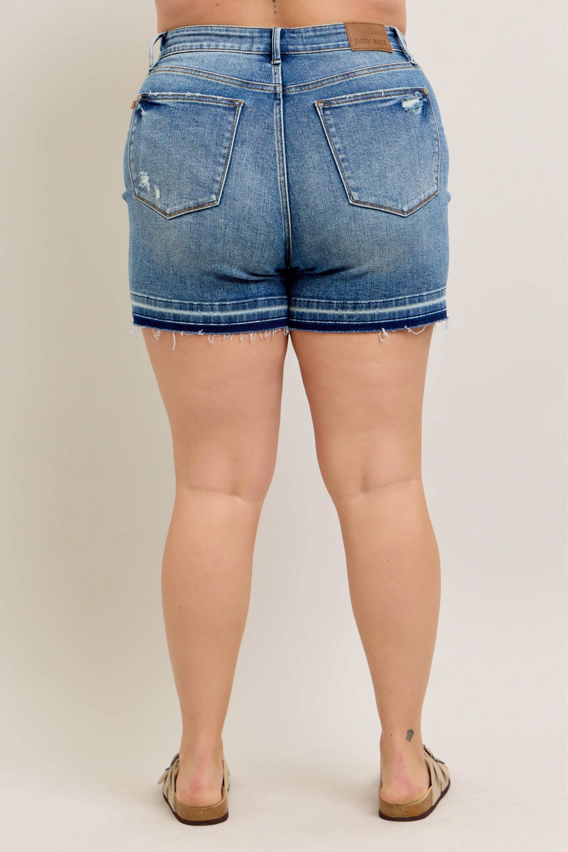 Mid Rise Tummy Control Vintage Wash Release Hem Shorts