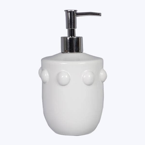 Elevate your bathroom or kitchen decor with this chic ceramic soap pump featuring a classic hobnail design. Its glossy finish and durable pump mechanism make it a stylish and functional addition to your space.