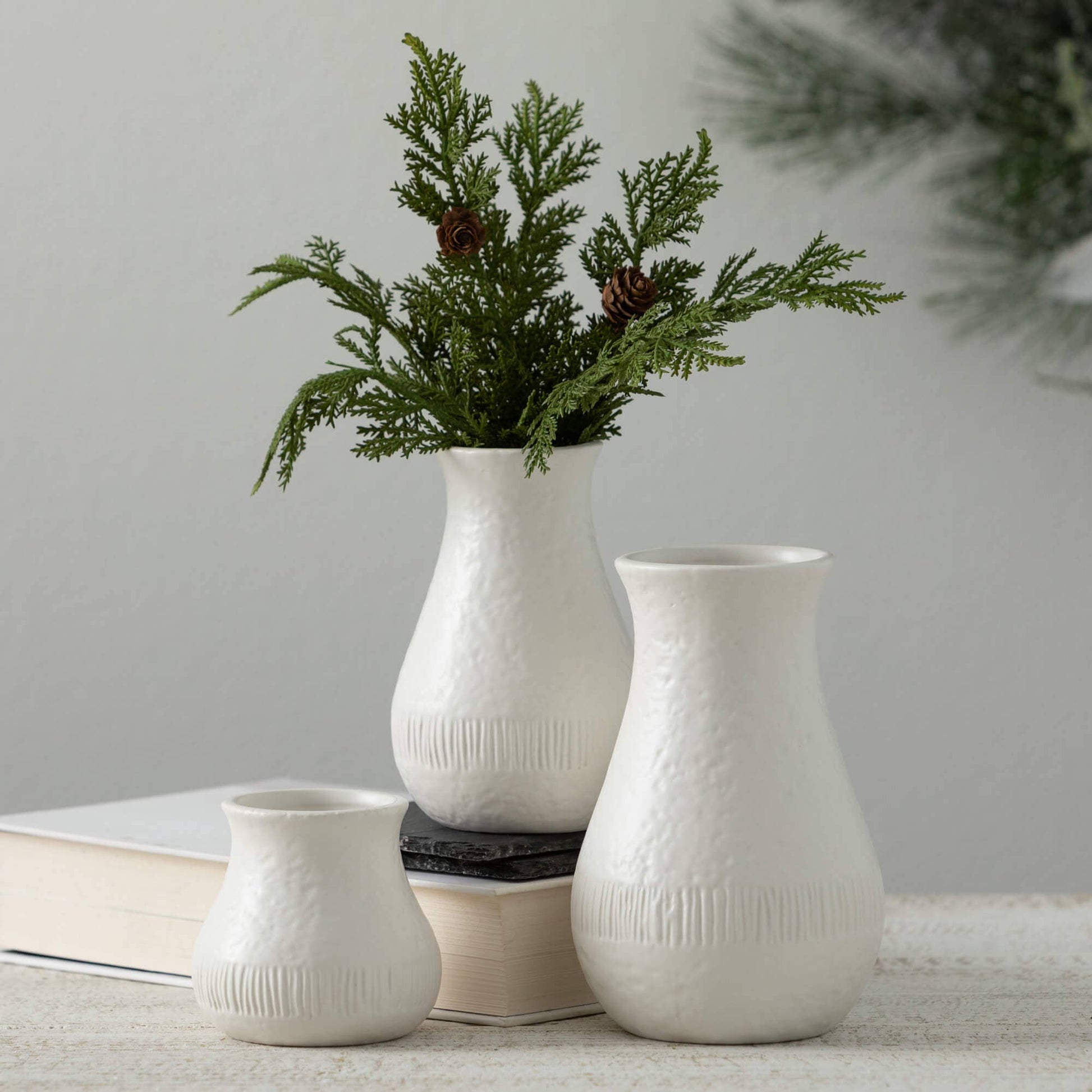 Modern and functional, exclusive ceramic vases boast an elegant design, distressed stone-like finish and a neutral tone that will blend seamlessly into any style and color scheme. Fill these vases with your favorite botanicals for an on-trend, must-have look for any room in your house.