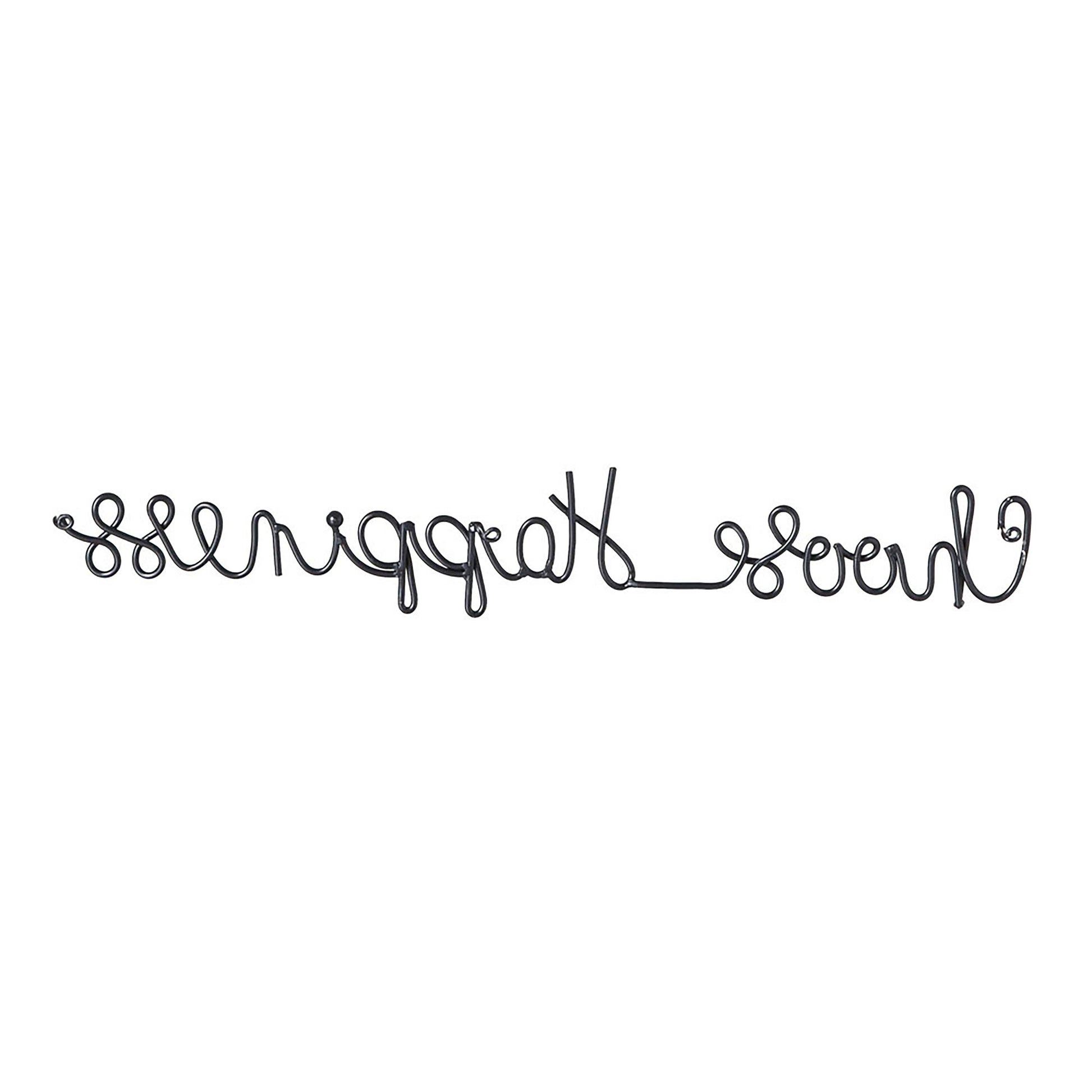 Spread happiness with this precious 3D metal wall décor. The inspirational cursive design boasts a powder-coated black finish, sure to complement your current décor. It's outdoor safe, making it the perfect door hanger, wall art, or gift.