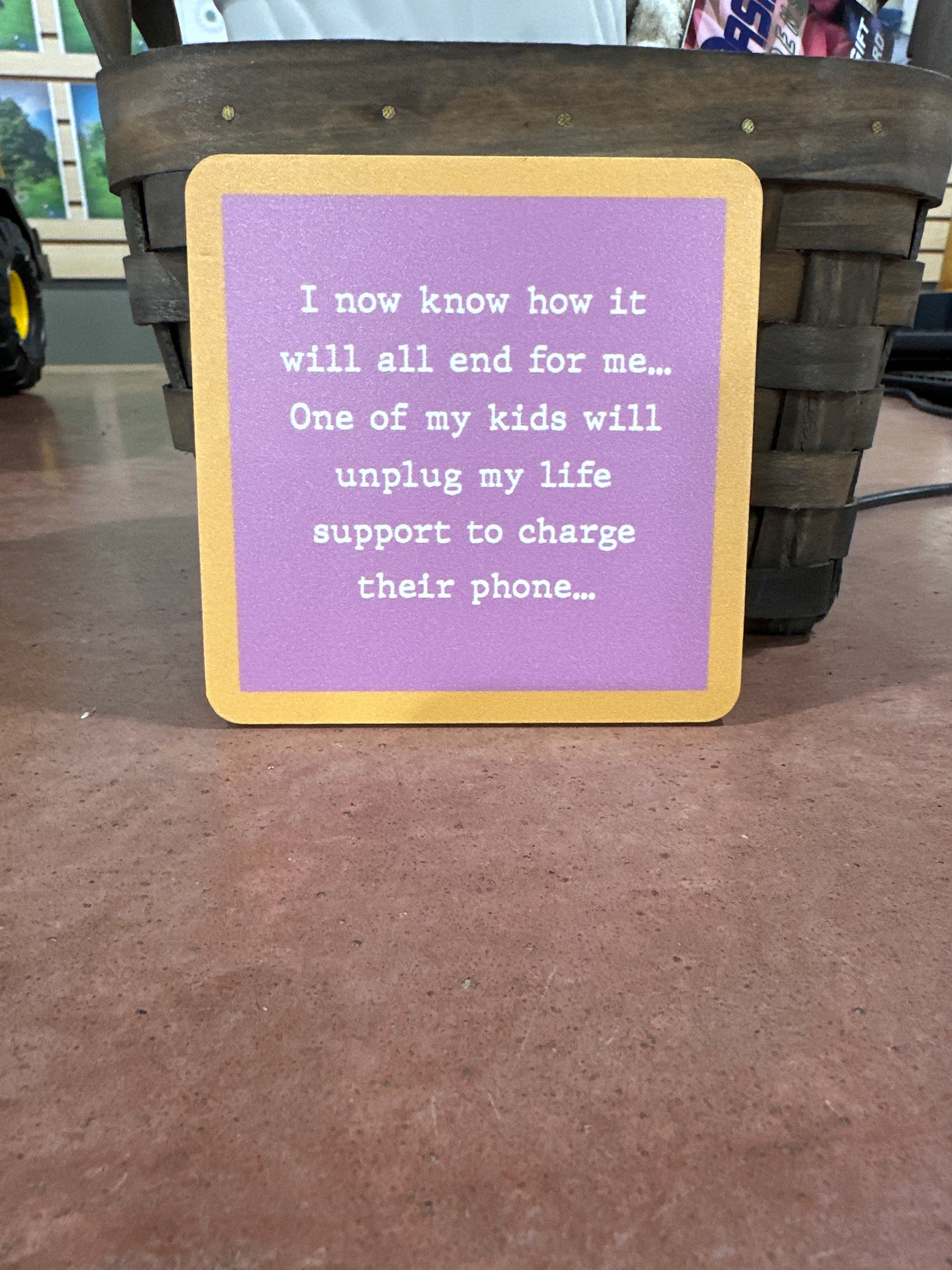 Coasters are 4”x4” and made with resin with a cork backing and round corners.