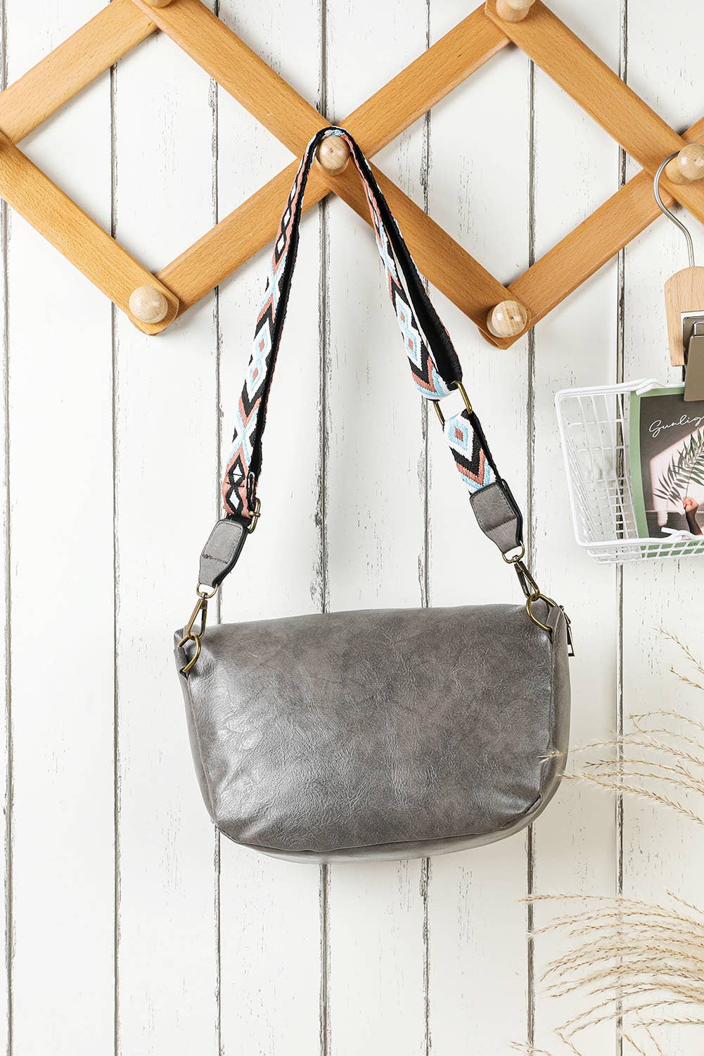 This grey flap snap purse is your new go-to for hands-free fun! Featuring a thick guitar strap, it’s perfect for wearing crossbody or over the shoulder with ease. Spacious enough to stash all your essentials, it keeps you ready for anything while adding a cool, casual vibe to your look.