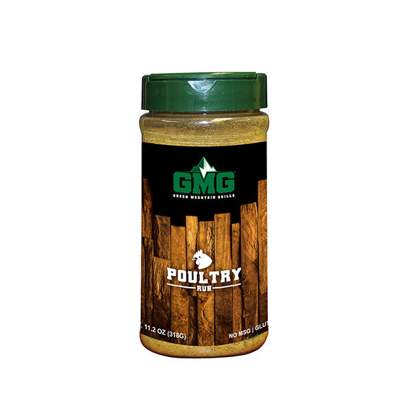 Poultry- Use our GMG Poultry Dry Rub on your chicken, turkey, pheasant, and more. Add big flavor with our Poultry mix of brown/white sugar, sea salt, celery seed, lemon peel, pepper, garlic powder, and turmeric, to bring your chicken game to the next level.