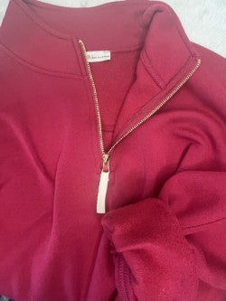 This fleece half-zip sweatshirt features a charming gold zipper detail and is an effortlessly versatile item that can easily be styled for both casual and polished looks.