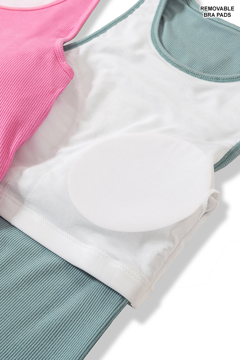 This racerback ribbed tank top features removable padding and a breathable mesh overlay. Made from a comfortable blend of 95% rayon and 5% spandex, it offers both support and flexibility for your activity sessions.
