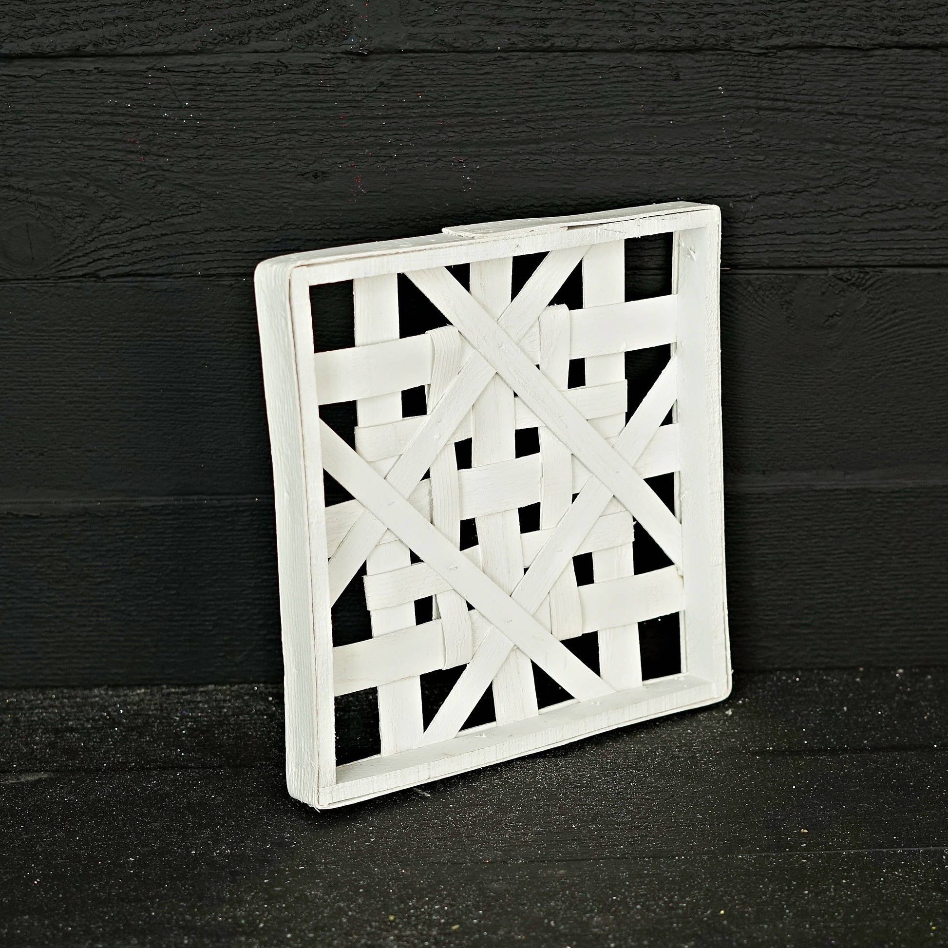 This 12-inch square woven wood frame in white brings charming farmhouse style to any space. Perfect for everyday use, it enhances walls, tabletops, or any area needing a tasteful decorative touch.