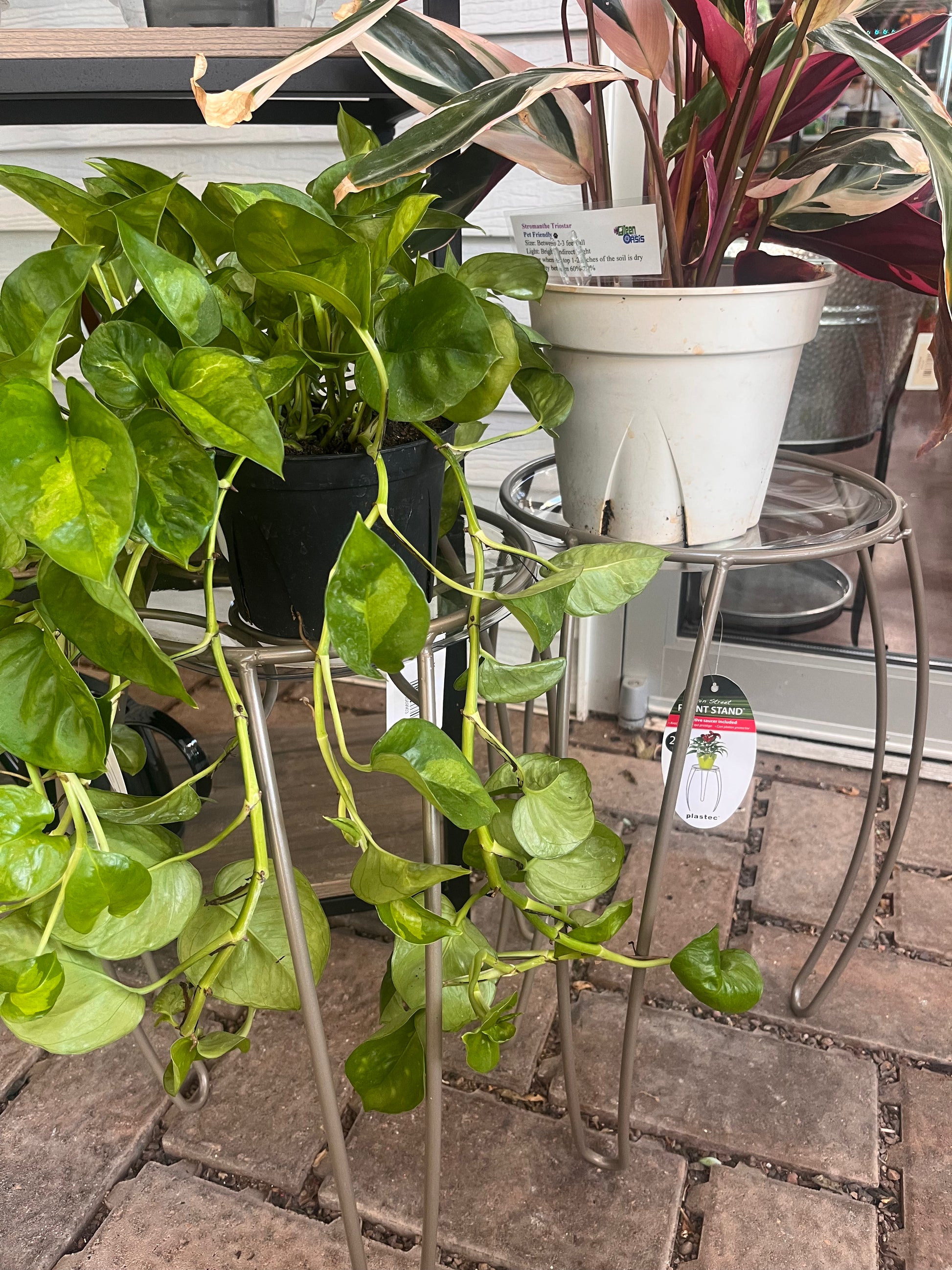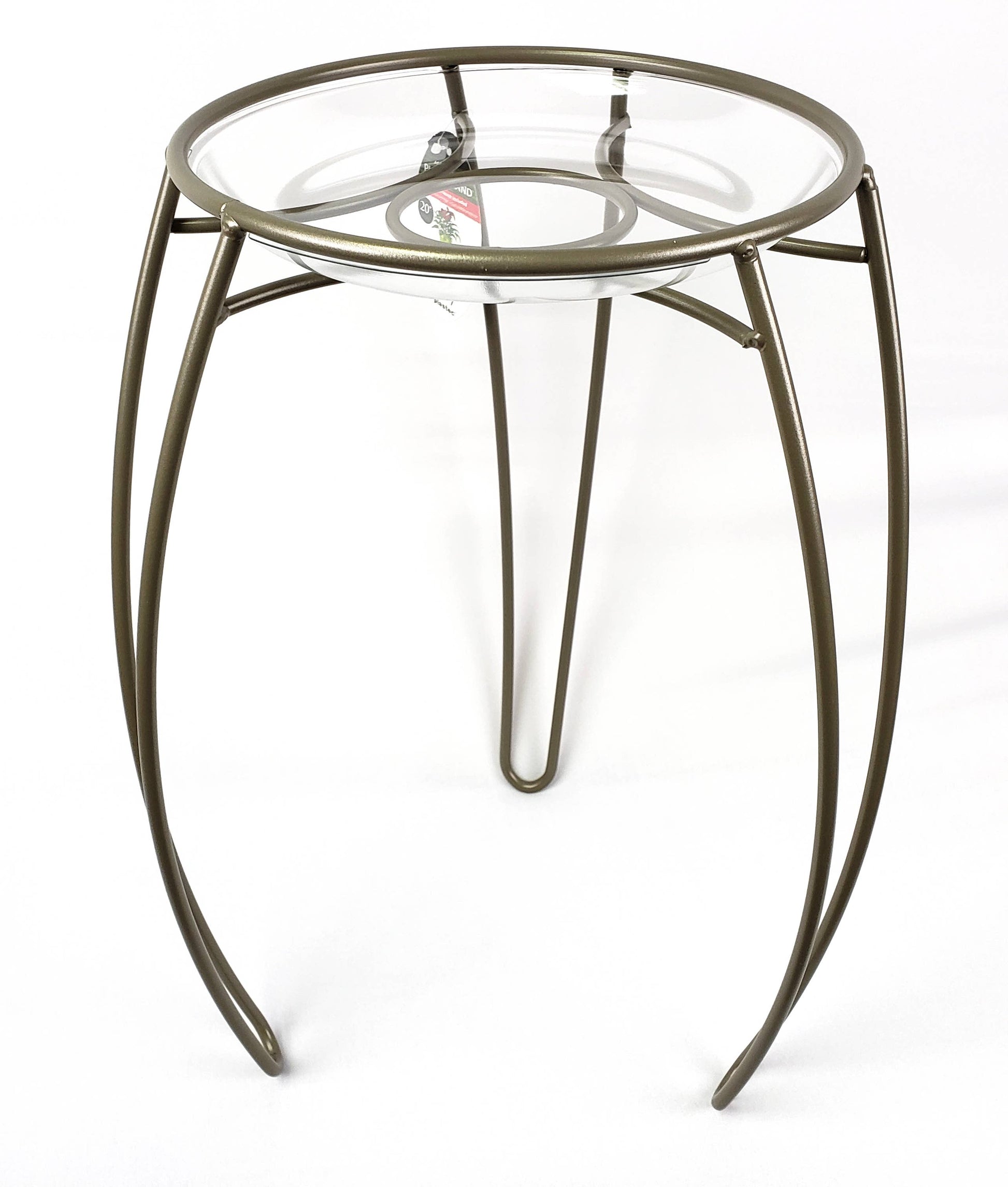 Simple and elegant; these stands will fit in with most modern décor or blend into a rustic background. Economically priced, comes with clear saucer for overwatering. Metallic Taupe Color.