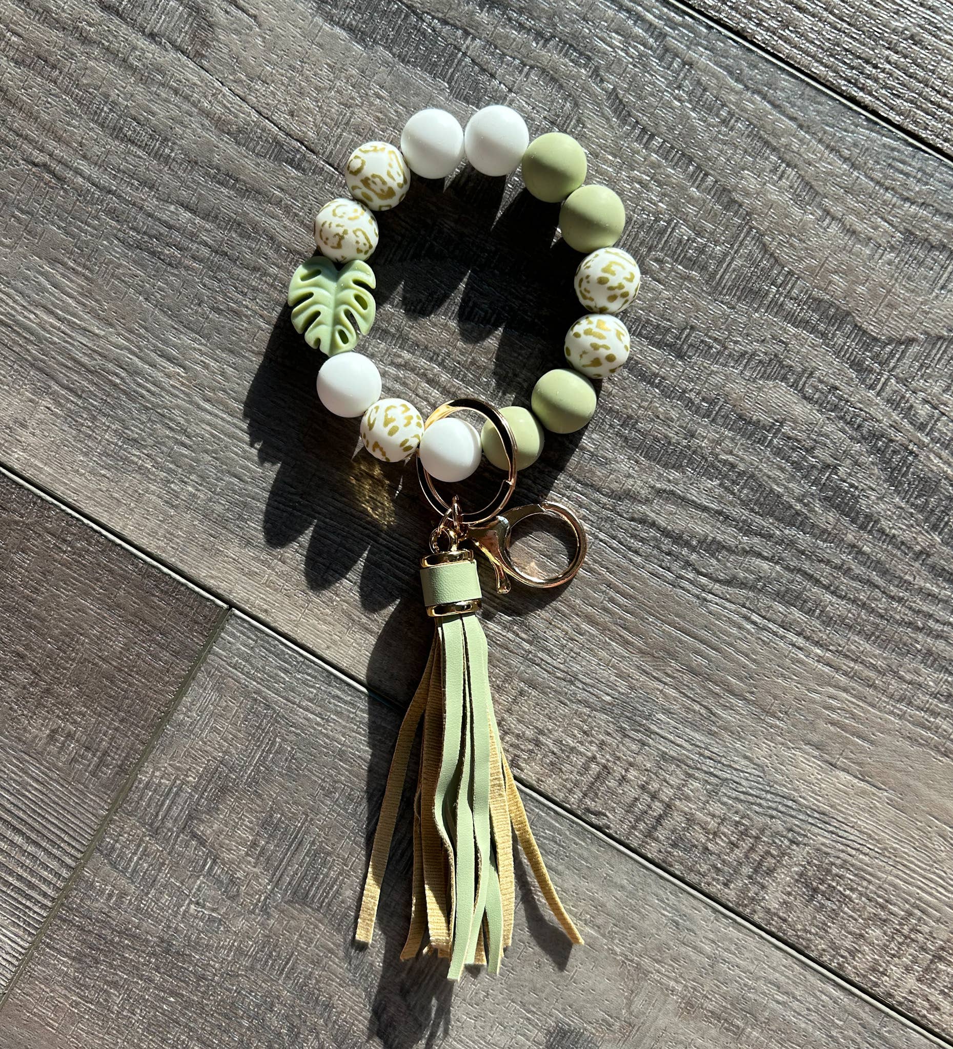 Carry your keys in style with this Monstera Leaf Beaded Wristlet Keychain. Featuring a detailed Monstera charm surrounded by hand-selected beads in natural greens and earth tones, it's the perfect accessory for plant lovers. The comfortable wristlet design keeps your keys close while adding botanical flair to your daily routine. Durable construction and a secure lobster clasp make it both practical and fashionable.