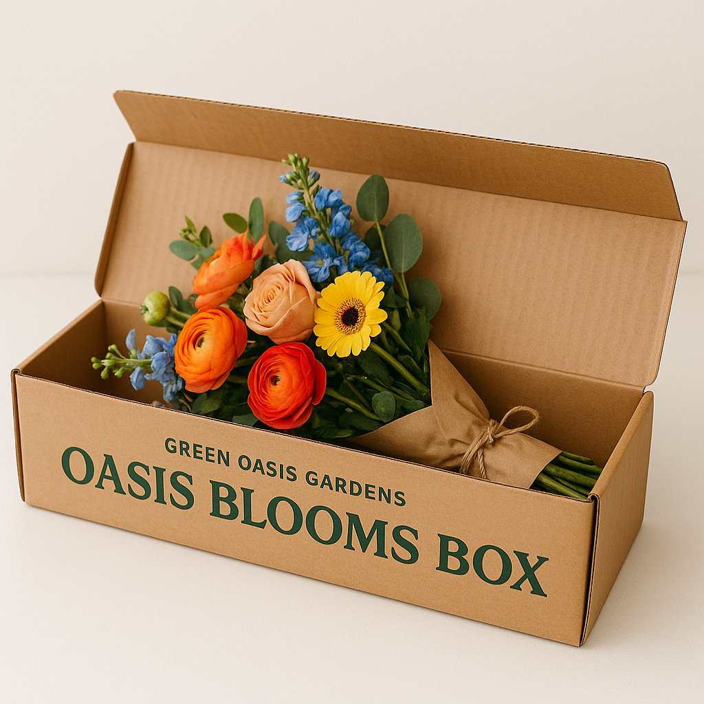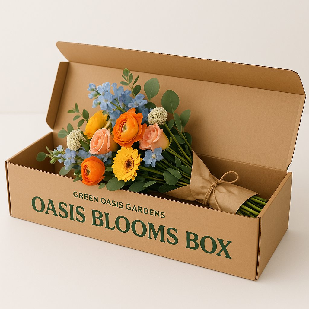 Treat yourself (or someone special) to a beautifully arranged box of fresh, seasonal blooms straight from Green Oasis Creations. Each Oasis Blooms Box is thoughtfully designed with hand-selected flowers to reflect the beauty of the season — perfect for brightening your space, lifting your mood, or celebrating life’s little moments. (Vase not included for shipping orders.)