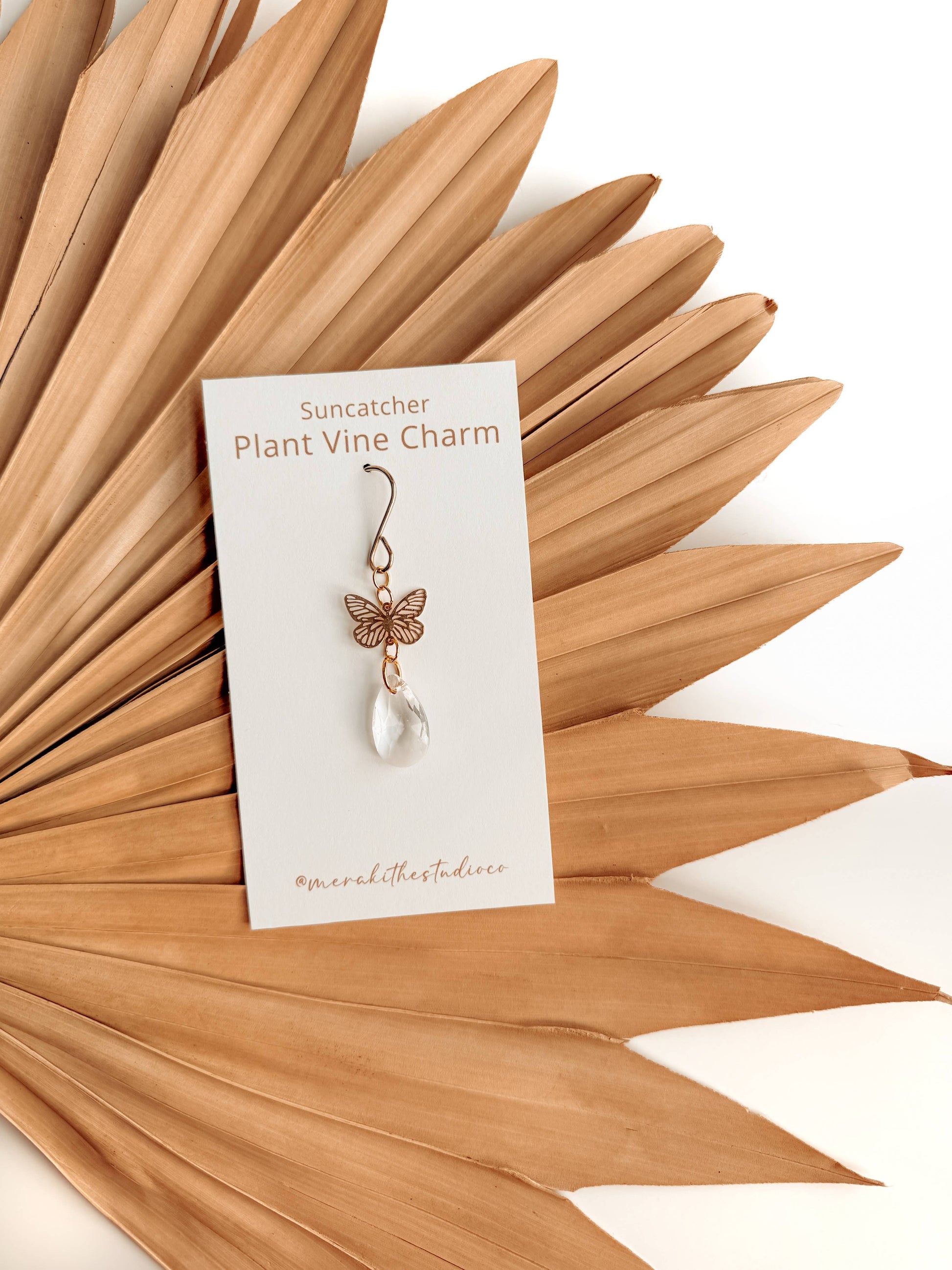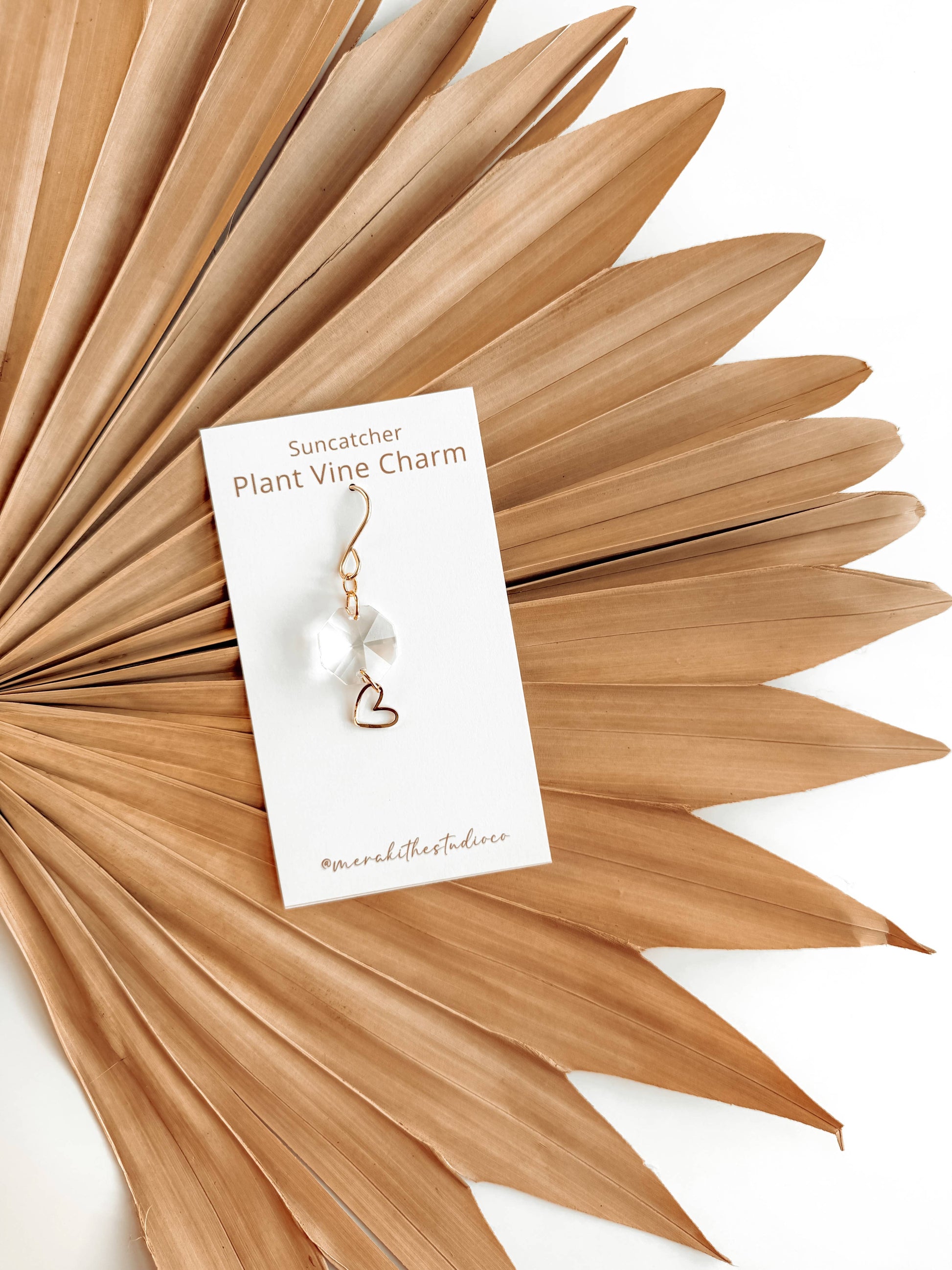 These delicate plant charms hang gracefully from vines, featuring a brass heart charm and suncatcher crystal. As DIRECT sunlight hits the crystal, sparkles dance around to create a dreamy, light-filled atmosphere. Perfect for hanging on vines or trailing plants! Coordinates beautifully with natural, bohemian, minimal, hippie, retro, & whimsical decor styles. For the best effect, place your sun catcher in front of a south-facing window, though ANY spot with DIRECT light will work. Its placement will create different effects.