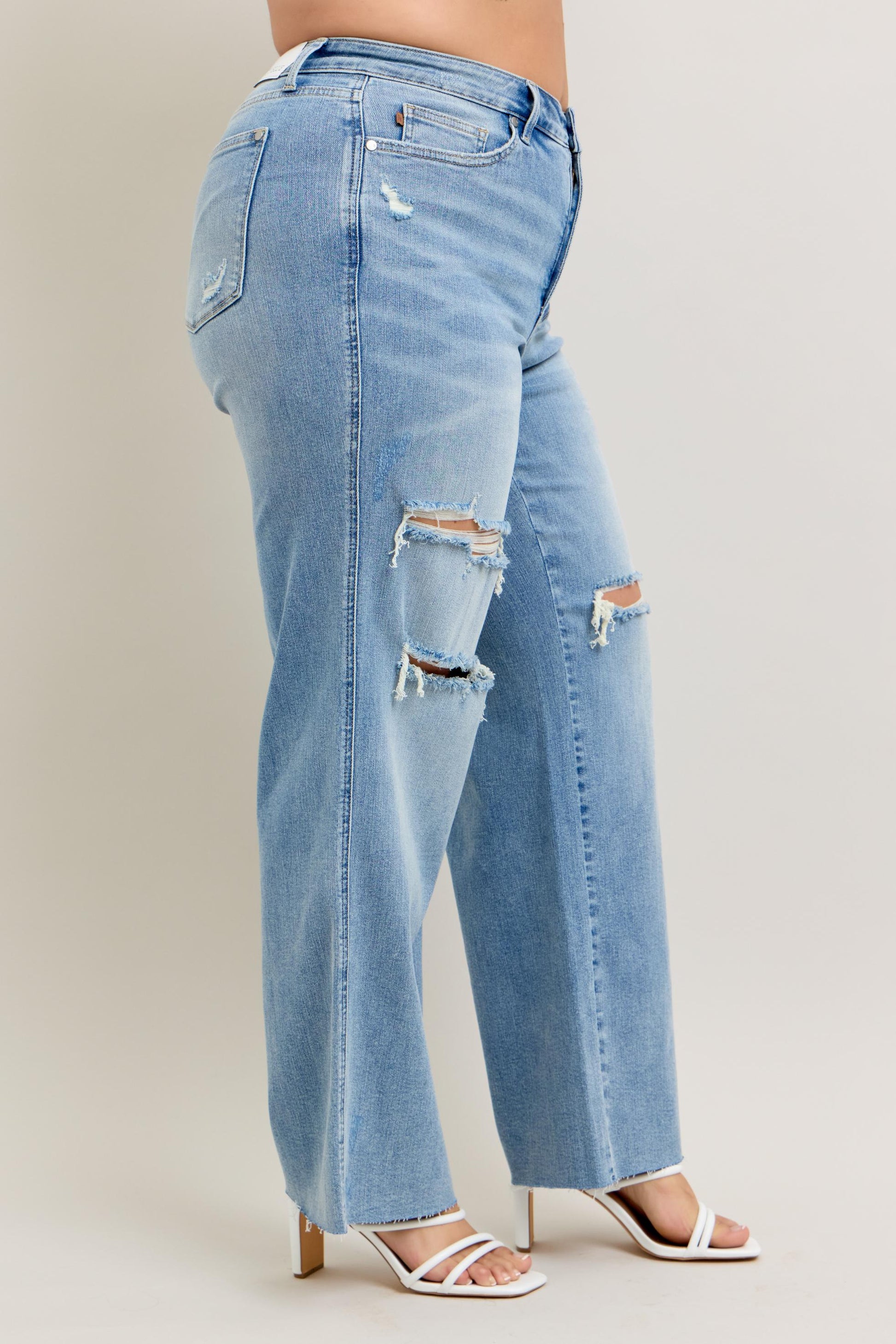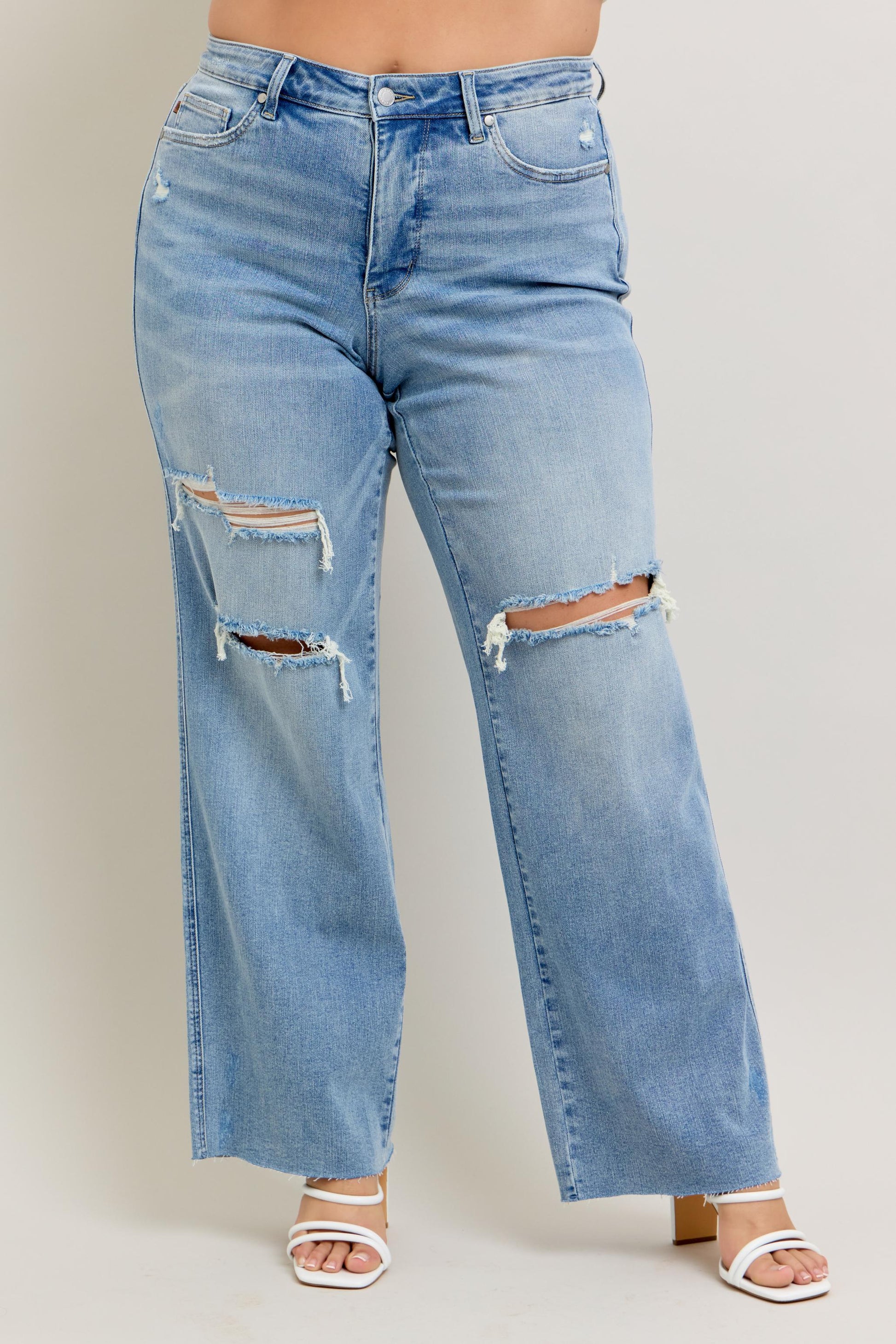 Mid Rise Tummy Control & Destroyed with Wide Leg