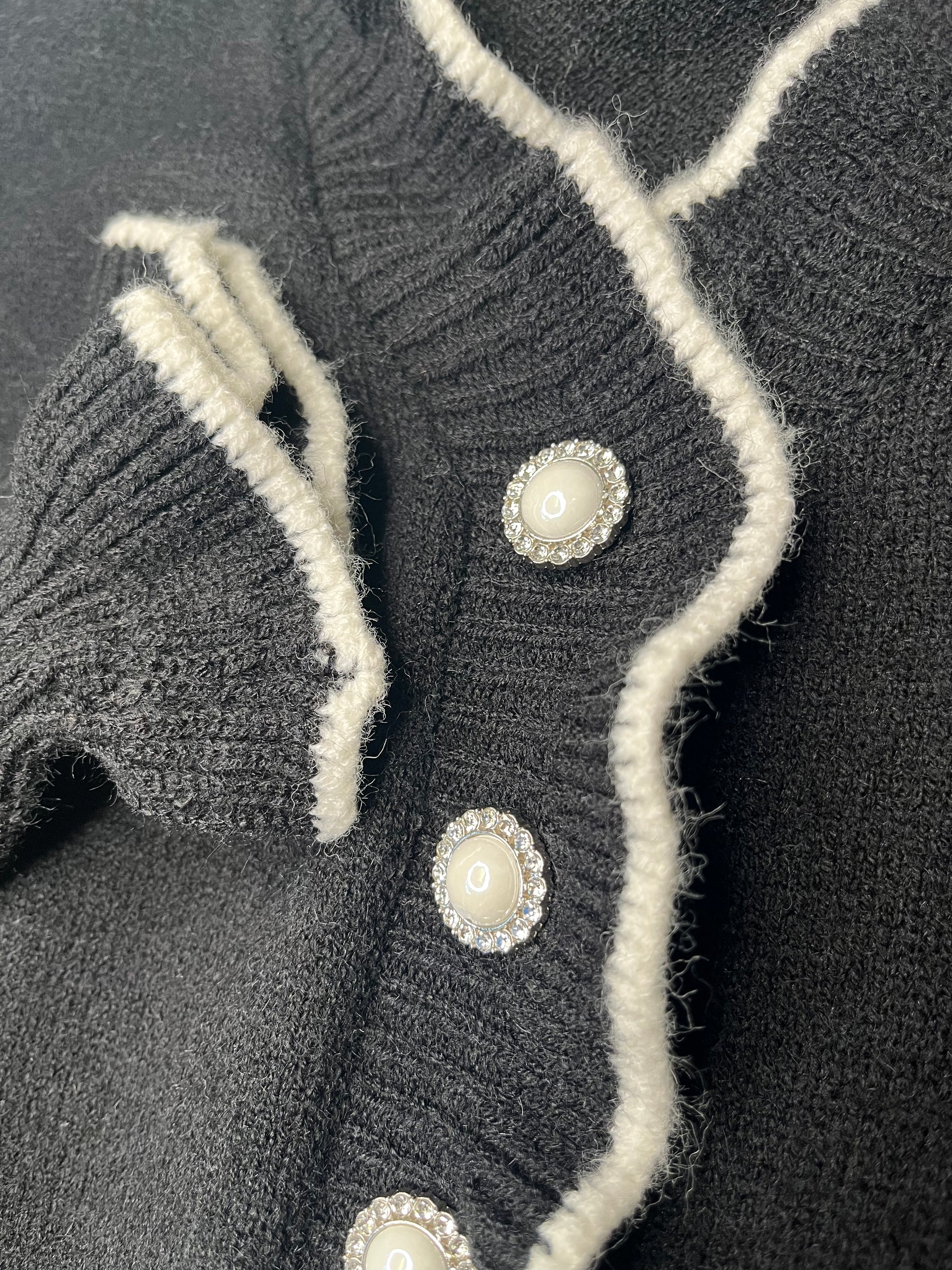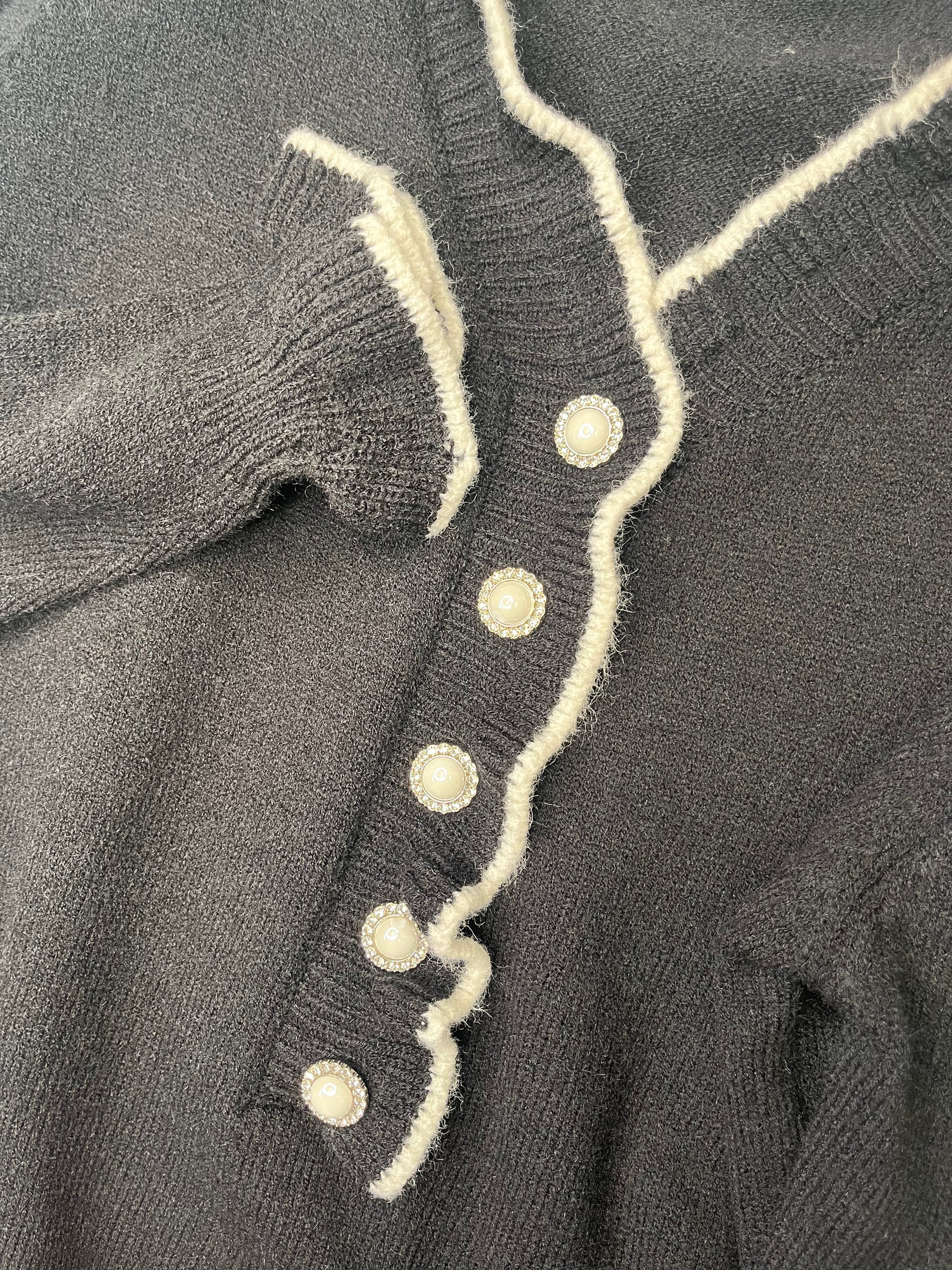 Stay stylish and cozy with our black with white trim V-neck color-blocked sweater featuring long sleeves. This versatile piece is perfect for layering and adding a pop of color to your wardrobe. Made with high-quality materials, this sweater is a must-have for any fashion-forward individual looking to stay on-trend.