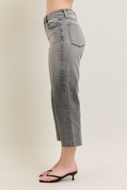 High Waisted Vintage Grey Wash & Front Pocket Embroidery with Crop Wide