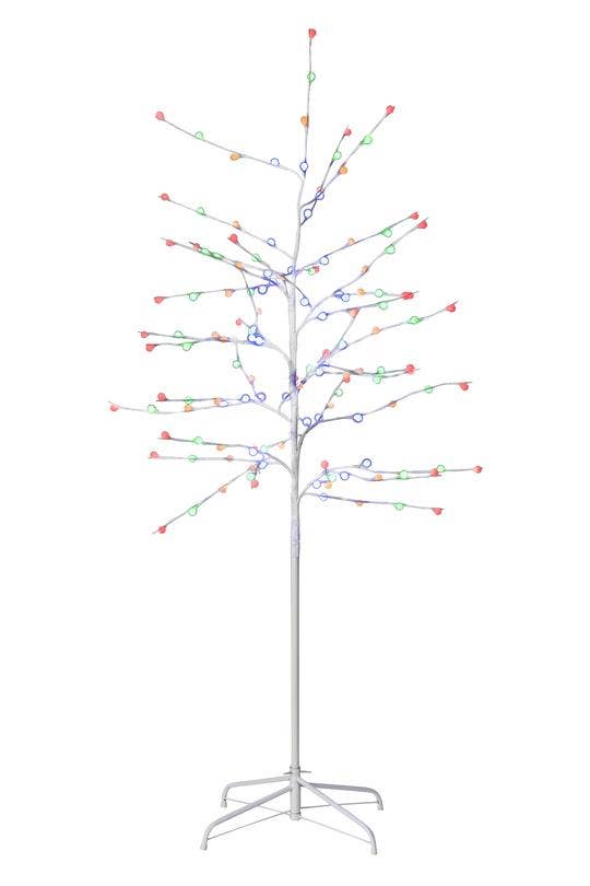 Ultra bright, high quality LED bulbs ensure ambient illumination, enhancing your lighting experience. They remain cool to the touch, minimizing risks of overheating. Frosted globes cover each bulb, giving them a softer, diffused luminosity. The gumball branch trees are bendable and can be shaped however you like while the base is constructed from metal and plastic. These wrapped prelit trees are powered by a 12V power adapter, which supplies a steady stream of energy source and allows for continuous, dazzling luminosity.