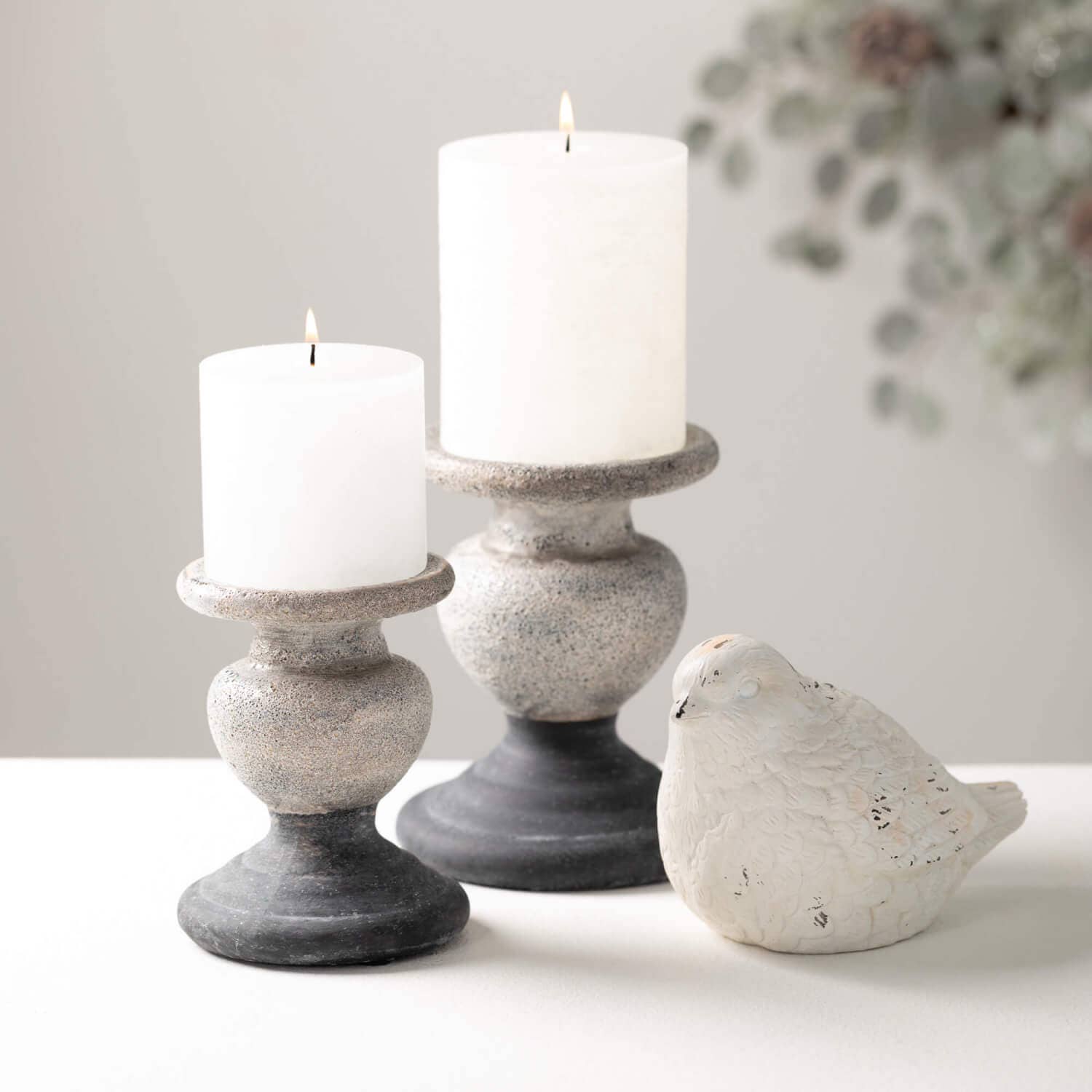 Taking your style to all new heights is these lovely bird figurines. Showcasing a delicate whitewash finish with vintage scrape away. They are perfect for coffee tables or side tables in your home.