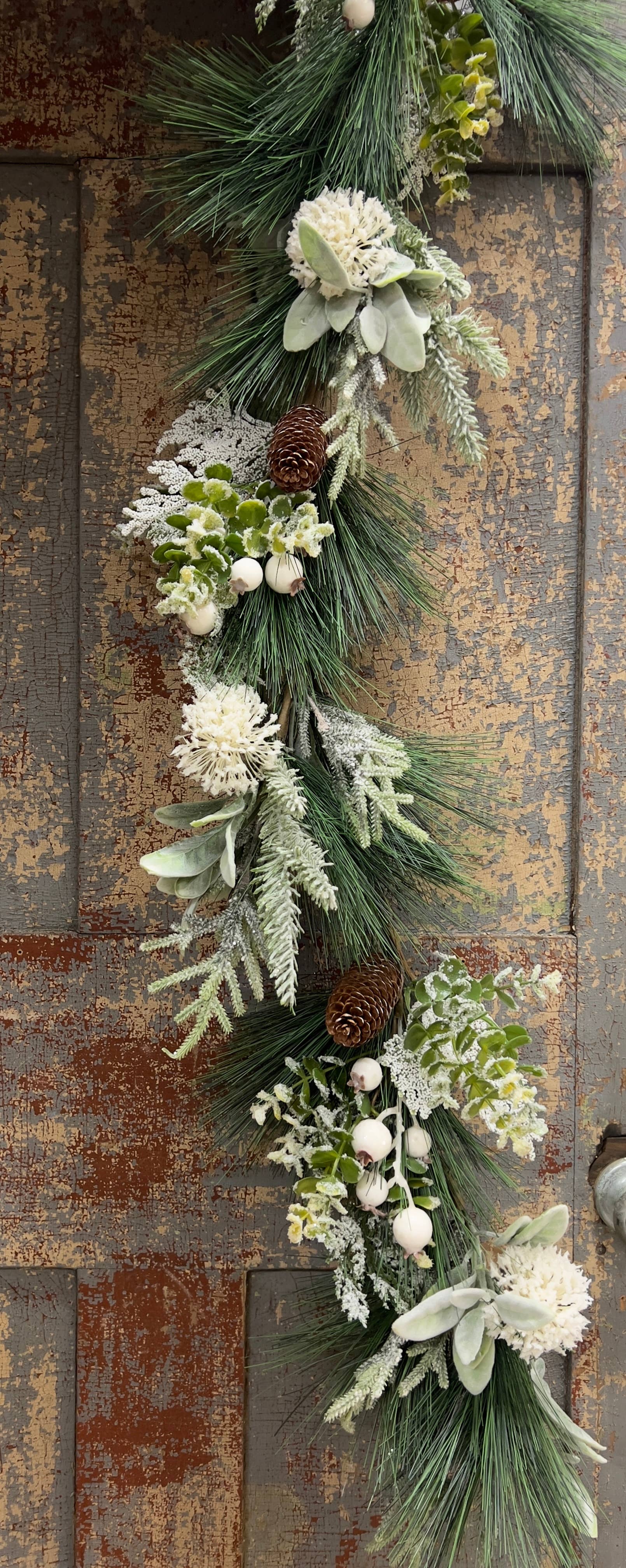 Discover the magic of the winter season with our Winter Whisper Garland. This exquisite piece is designed to bring a whimsical touch to your home or event, capturing the serene beauty of winter in a delicate, yet striking way.